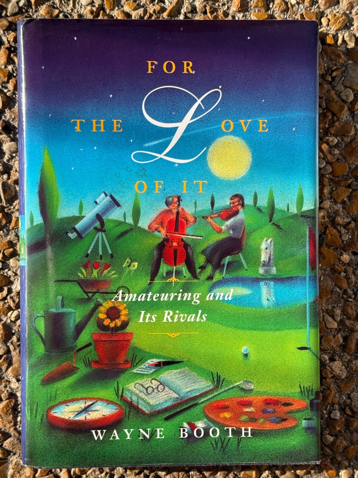 We know all this about Wayne because among his many scholarly books and essays on subjects like literary criticism, rhetoric, and ethics, there is an intimately personal book about his journey as an amateur cellist. “For the Love of It: Amateuring and Its Rivals” rescues the term “amateur” from its “unskilled” and second-rate connotations and returns it to its Latin origin, the word “amator” or lover. Wayne’s book describes, with considerable humor and humility, the formidable challenges of learning the cello as an adult. It also examines human craving for love, fun, and connection, and describes how the labor of learning to play the cello well enough to do it with other musicians proved to be much more than an escape from the demands of work. Making music with others, reaching together for that elusive, unattainable goal, and occasionally soaring very close, all for the love of it, is a window to a whole different dimension of life itself.