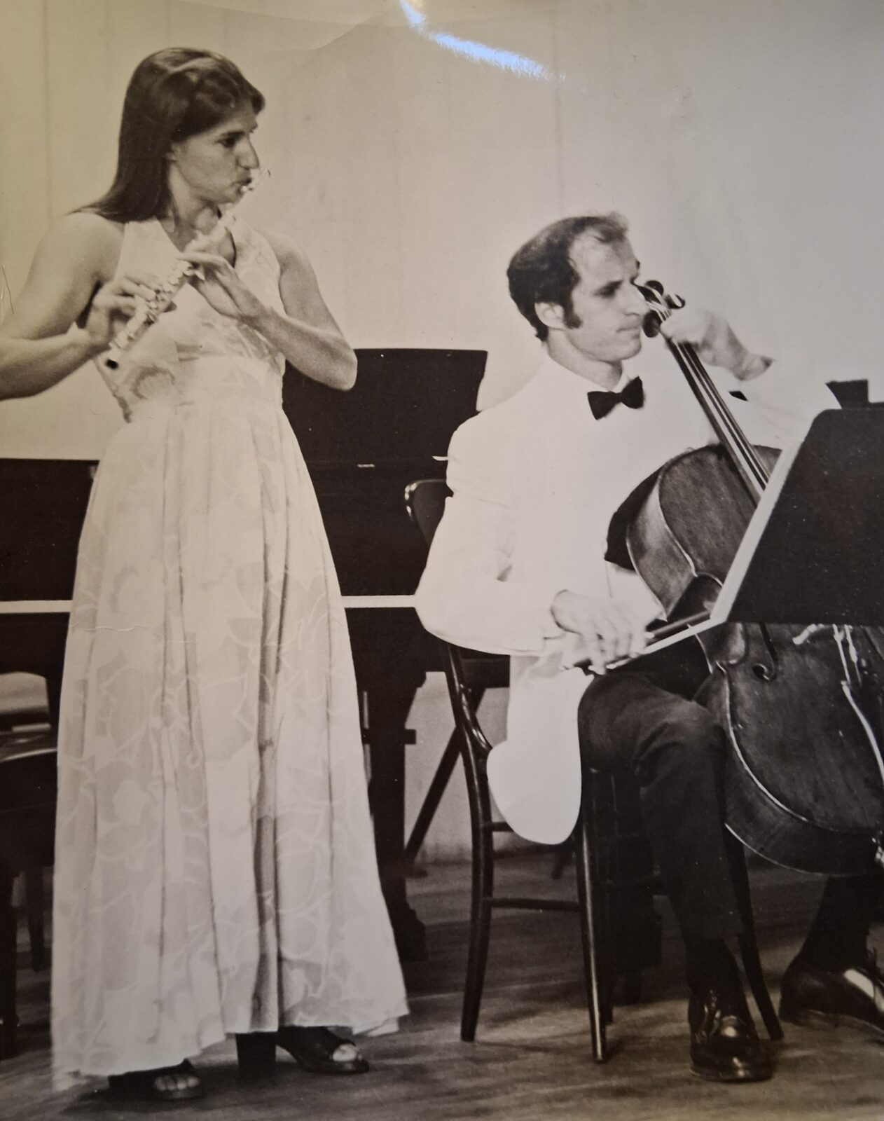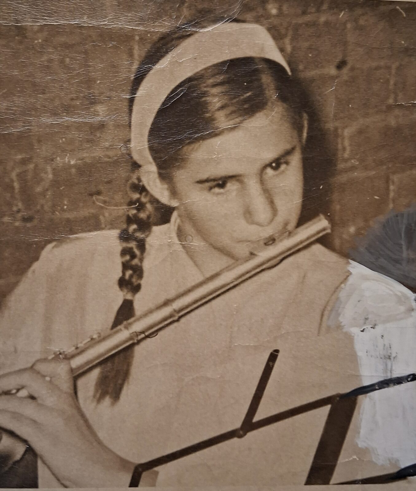 When I reached 13 years old, I was invited to join them and a cellist for my First Flute Quartet!! – the Mozart A major. I wore braids and barrettes and braces. I only remember the last movement, perhaps that’s all we played. It is a rondo with a very catchy theme, which I played fine…but I lost my place. No problem, the theme came back, it was a rondo after all, and I found my place. But it was the wrong instance, and I was soon out again. No problem, when the rondo theme returned, I picked it up. Again in the wrong place. They didn’t stop – one doesn’t! – and finally the rondo theme returned, and it was the coda, and we ended together. I was Very Unhappy, to be in the cold so much of the time, while Helen was full of good cheer and I suppose gave me some sort of encouraging compliment….