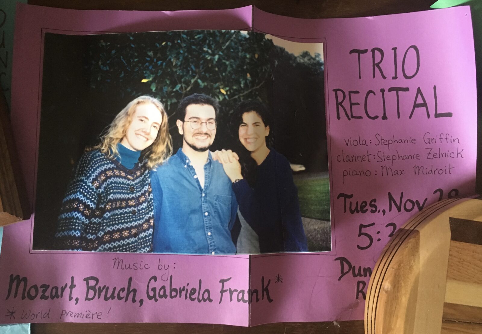 I went straight from Belgium to Houston, Texas to do my undergraduate degree in viola performance at Rice University. Full disclosure: Stephanie Zelnick, who wrote the article Irreverent Friends, the True Inspiration Behind Clarinet’s Chamber Music Gems for the ACMP blog, became one of my closest friends. Stephanie invited me into a world of clarinet music beyond Acker Bilk. I got to hear her practice the Copland Clarinet Concerto, and through her I gained an appreciation for the level of responsibility (and stress) of being an orchestral clarinetist. Most importantly we formed a trio with pianist Max Midroit, with the working band name “Steph to the Max” – later to be called the Feldspar Trio, as a reference to the “Rocks for Jocks” (intro to geology) class the two Stephanies took for science credit. We played Mozart’s famous Kegelstatt Trio and Bruch’s Romantic Pieces, and even “commissioned” a brand new piece by Rice University undergraduate composer Gabriela Lena Frank.